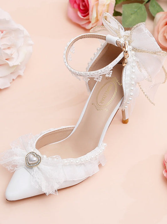 ホワイトティードリーミングリボンパールシューズ