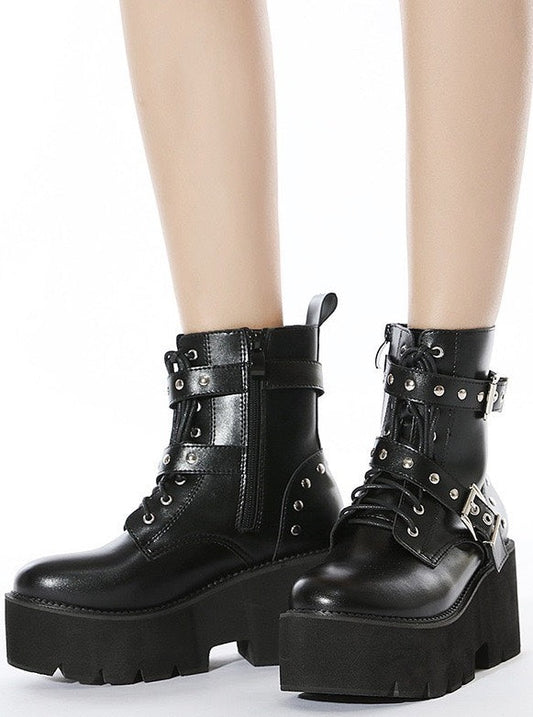 パンククロスベルトバックルプラットフォームシューズマーティンブーツ