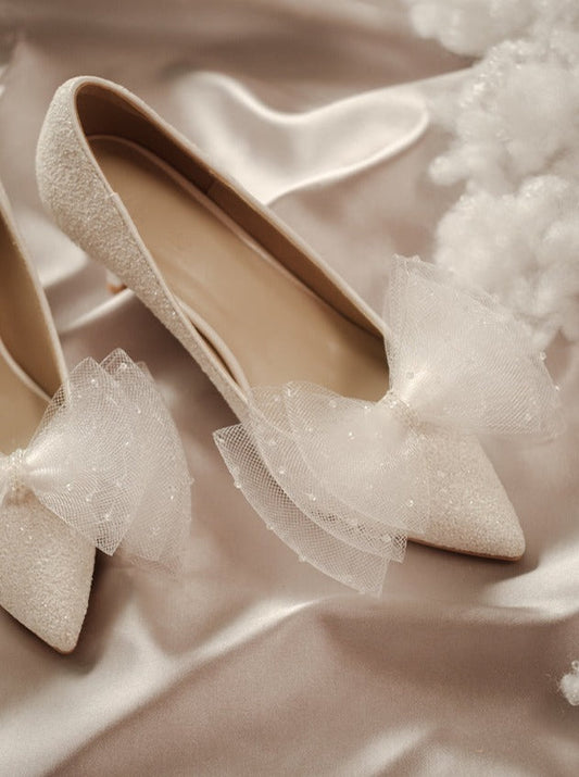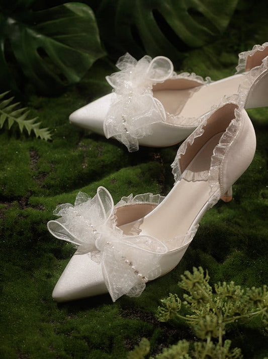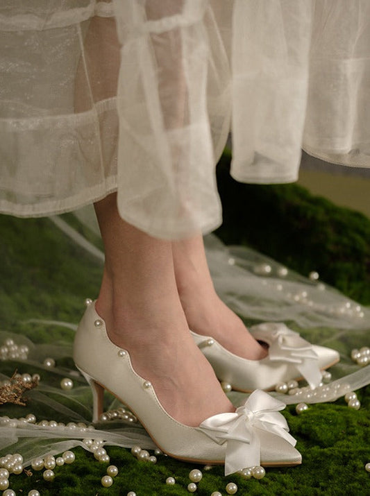 パールポインテッドトゥリボンピンヒール