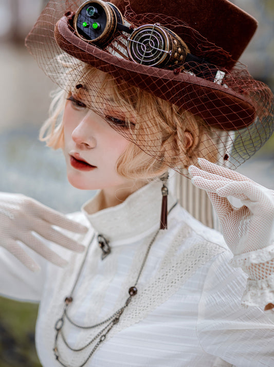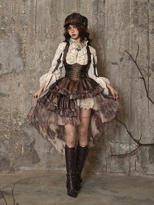 スチームパンクヴィクトリアンホワイトシフォンスカート