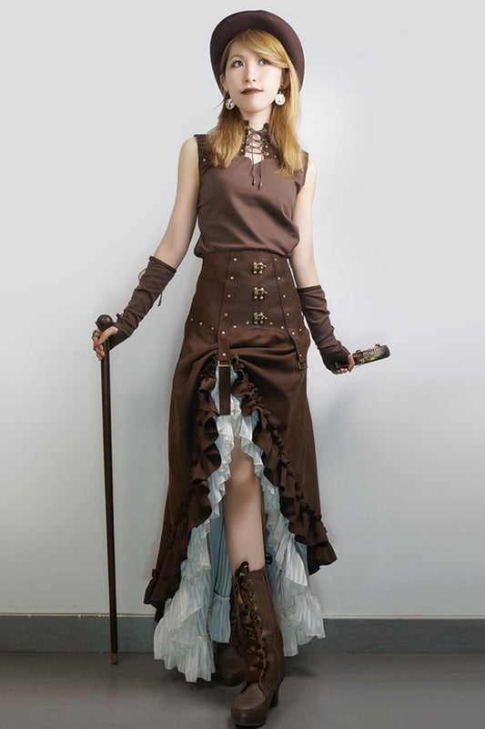 レトロスチームパンクヴィクトリアプリーツテールスカート
