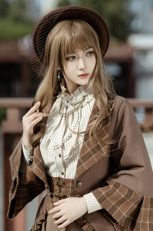 エレガントガールヴィンテージミッドセンチュリーシャツ+スカート+ベルト+ケープ