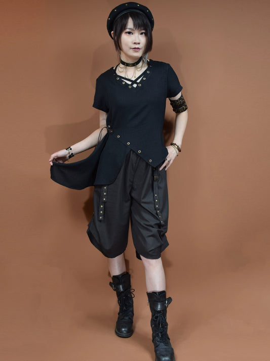 【予約商品】パンクスタイルダークゴシックドレス+ショートパンツ+ショール+スリーブ+ベルトバッグ