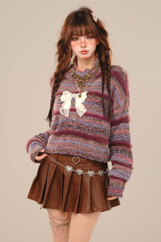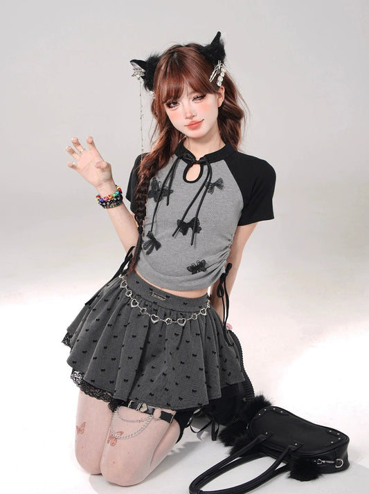ピュアホワイトピンクバックドロストリボンクロップドTシャツ