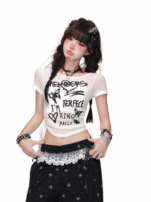 プリントオフショルダールーズストラップシアートップス【予約商品】