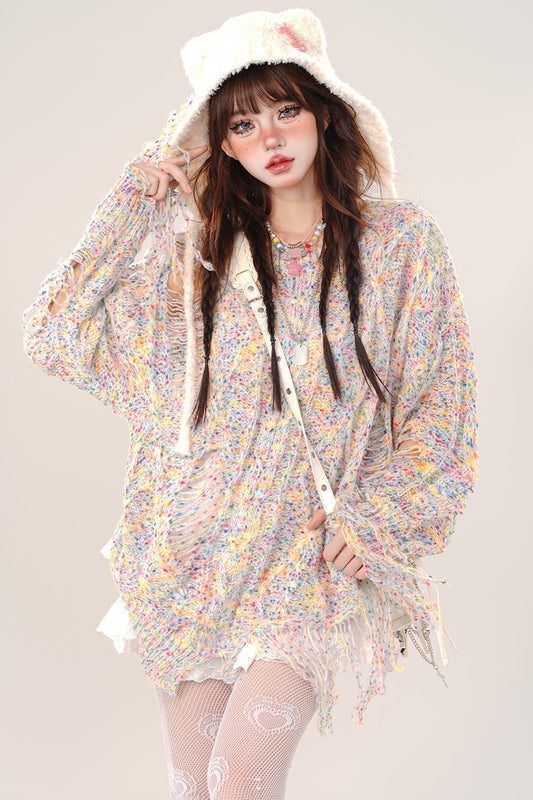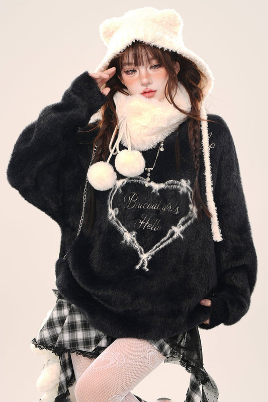 ルースレイジーツーピースセットブラックキャミソール+シアールーズニットトップス【予約商品】
