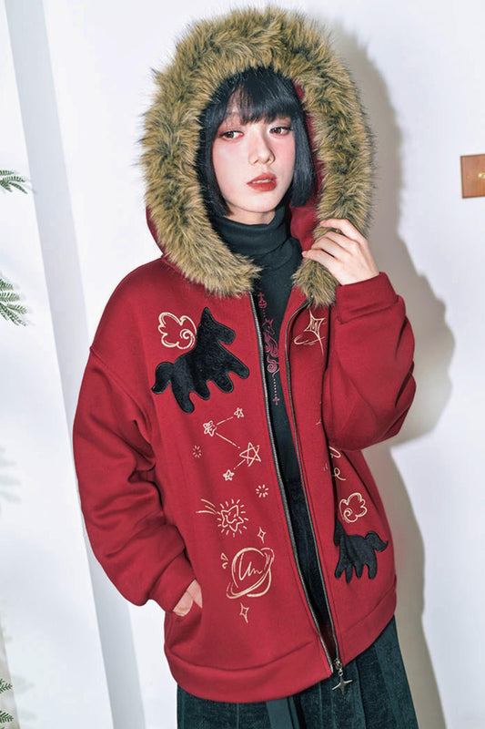 グラフィティファーカラーフーデッドフリースジャケット
