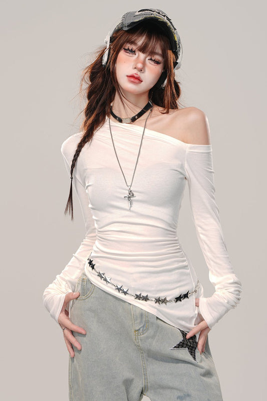 イレギュラーショルダーロングスリーブトップ