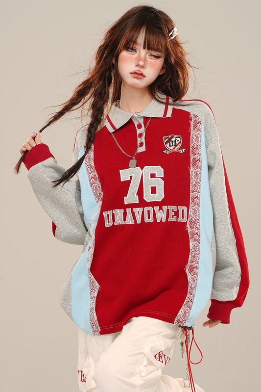 アメリカンレーストラックトップスウェットシャツ