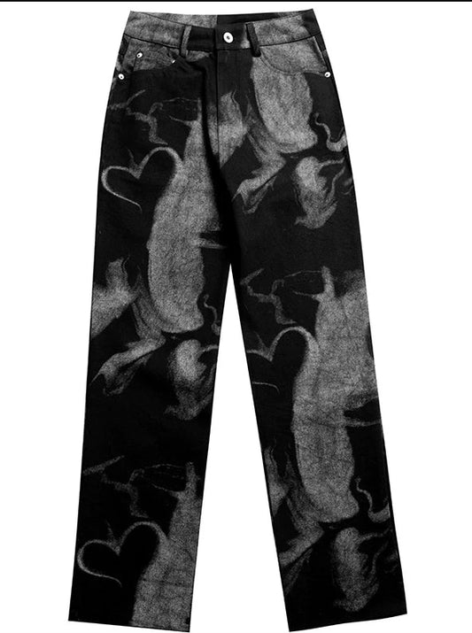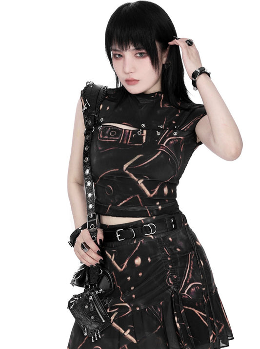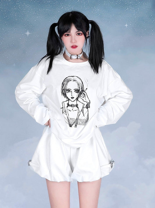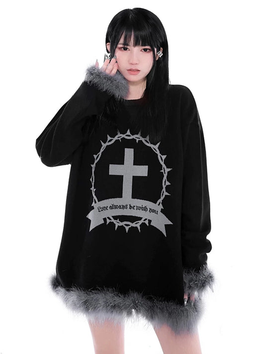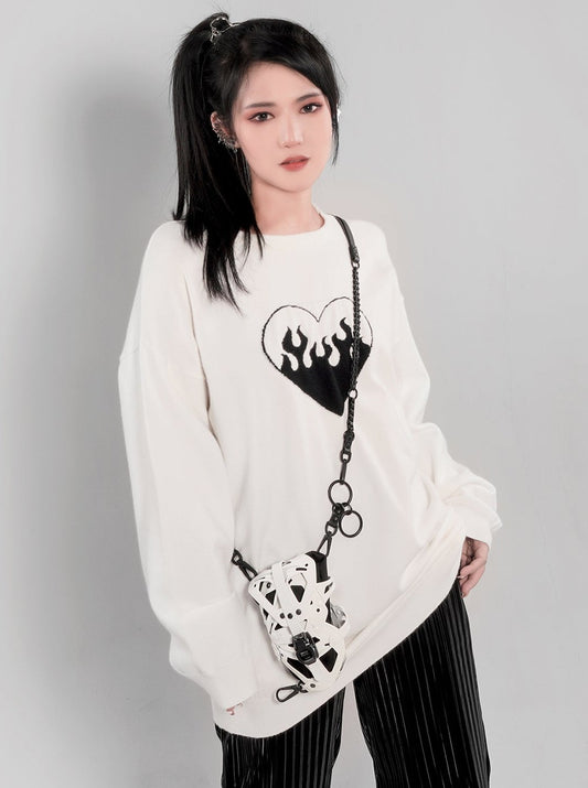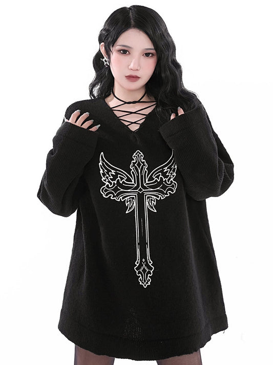 ラバープリントウイングクロスストラップネックルーズダークスタイルプルオーバーセーター