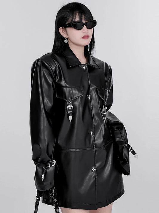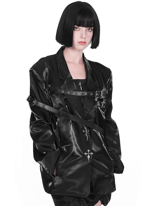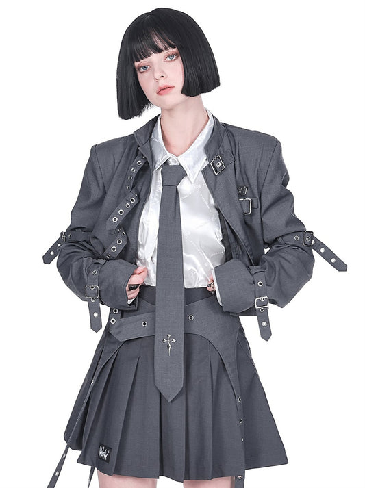 メタルパンクバックルデコレーションショルダーパッドブレザージャケット