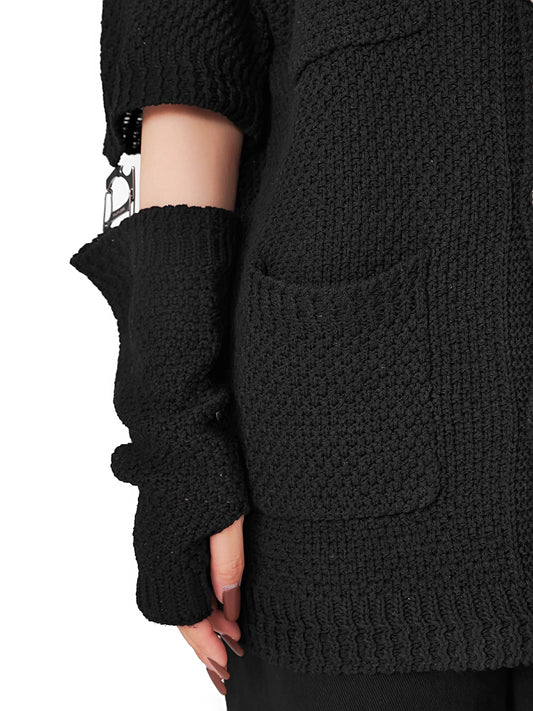 メタルハートボタンデタッチャブルスリーブニットジャケット