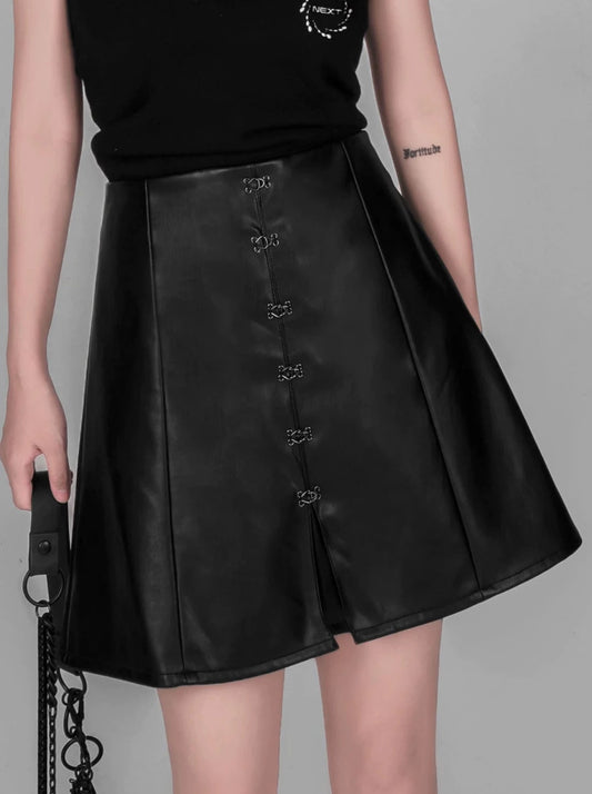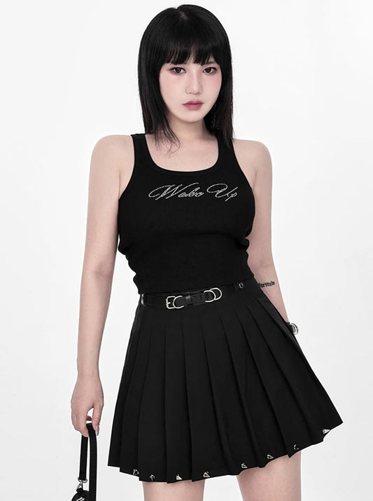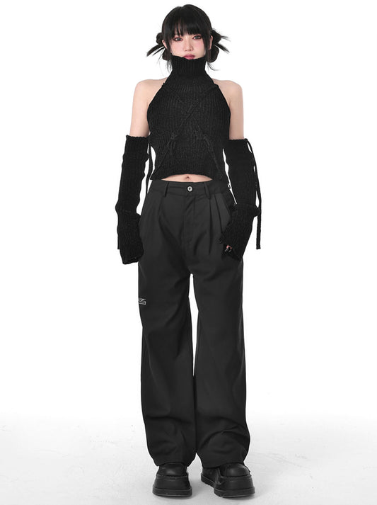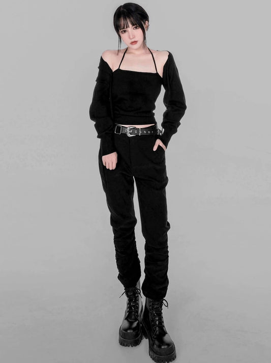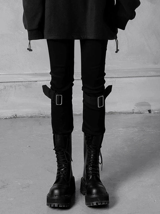 メタルバックルレトロパンクドローストリングクロップドパンツ