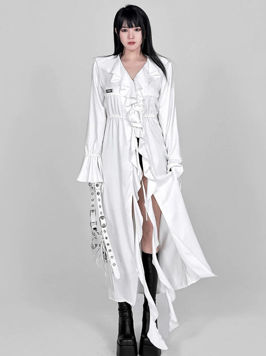 フリルレースドローストリングウエストシャツエクストラロングジャケット