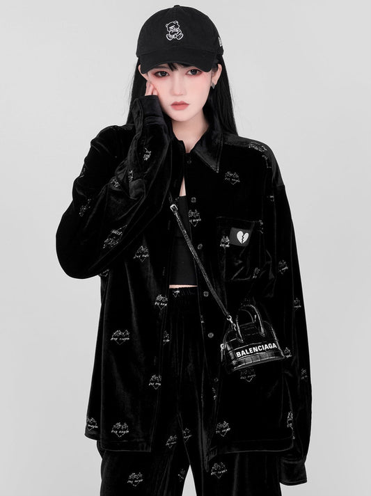 フレームラブデザインニッチベルベットシャツアウターウェア