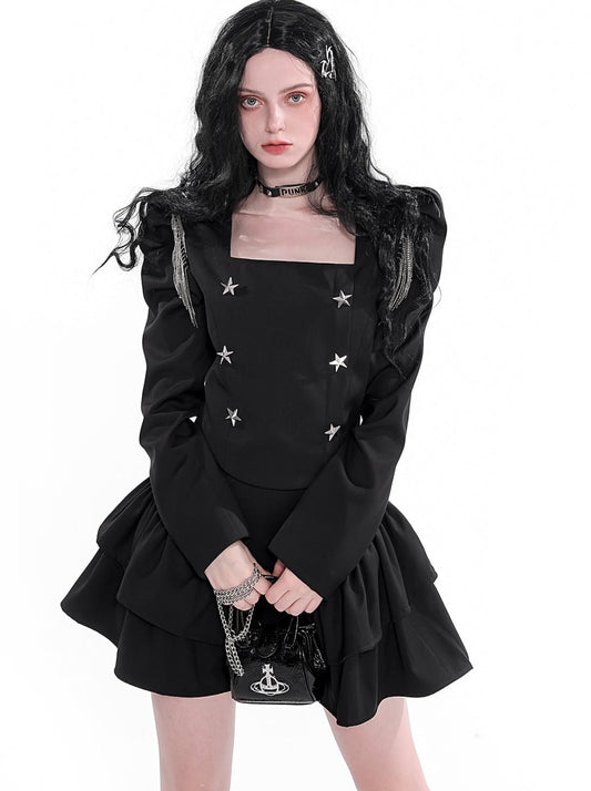 モードシックワンショルダーパフスリーブ+チュチュスカート
