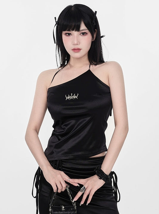 メタルヘビーカットフラットショルダースリムウエストクロスボタンシャツ