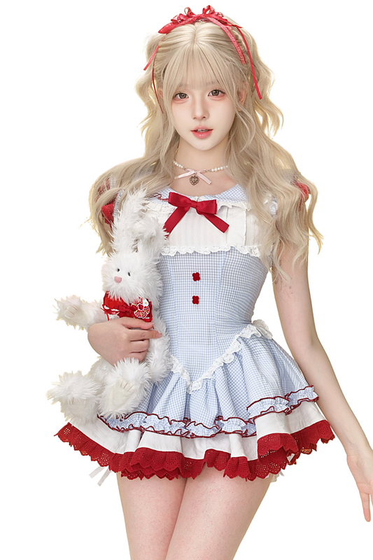 チェリーブロッサムブループレイドドレス+バブルパンツ