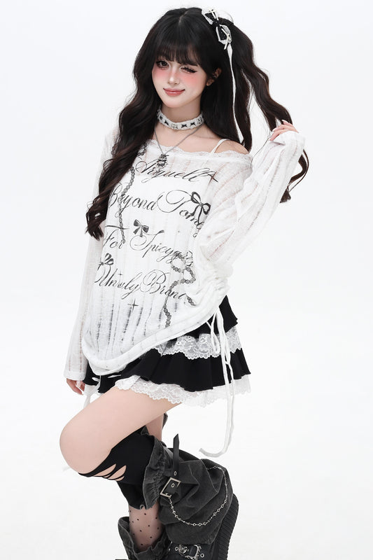 サブカルチャーロックガールルーズトップス