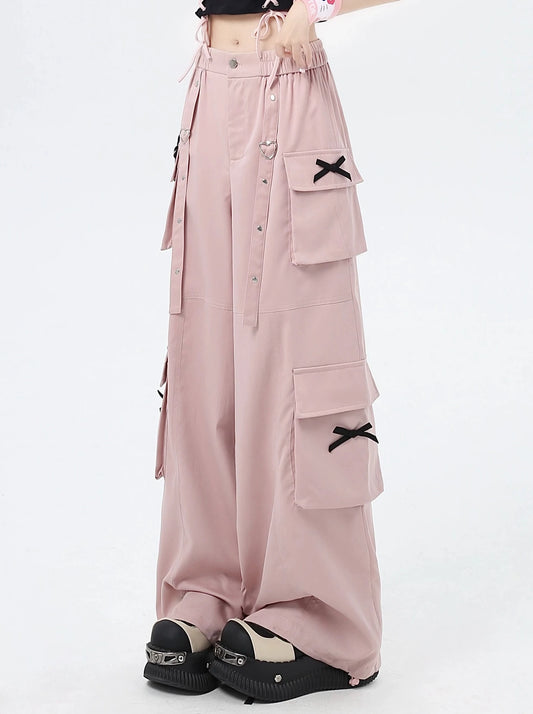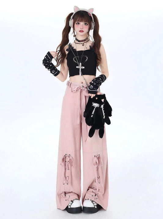 サテンリボンルーズレースアップパンツ