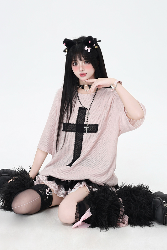 サブカルチャークロスパッチルーズトップス