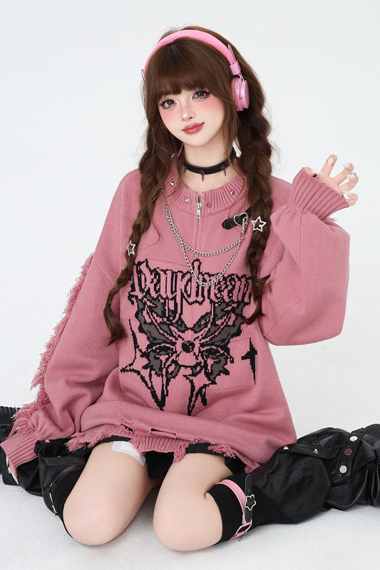 ゴシックチェーングラデーションホールサブカルチャーセーター