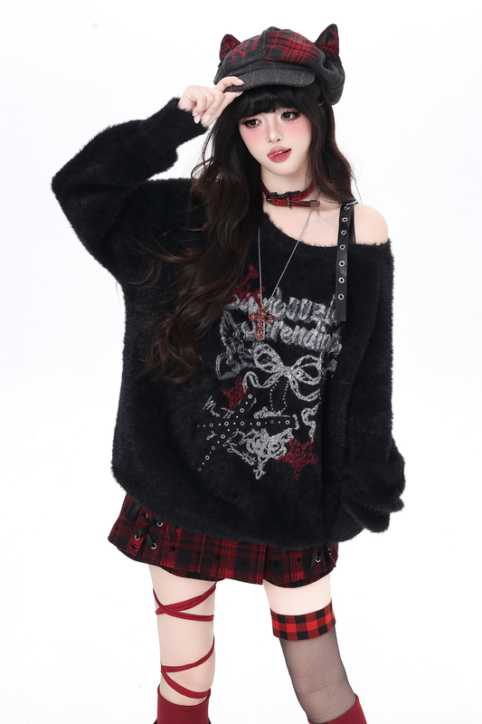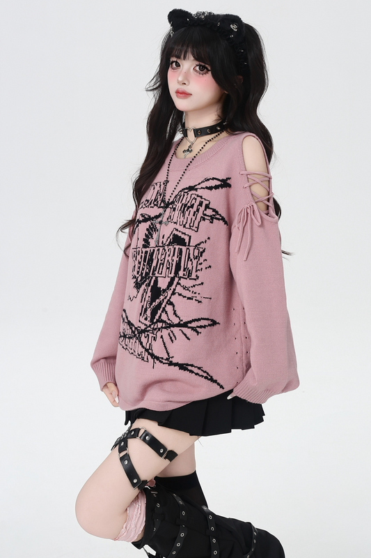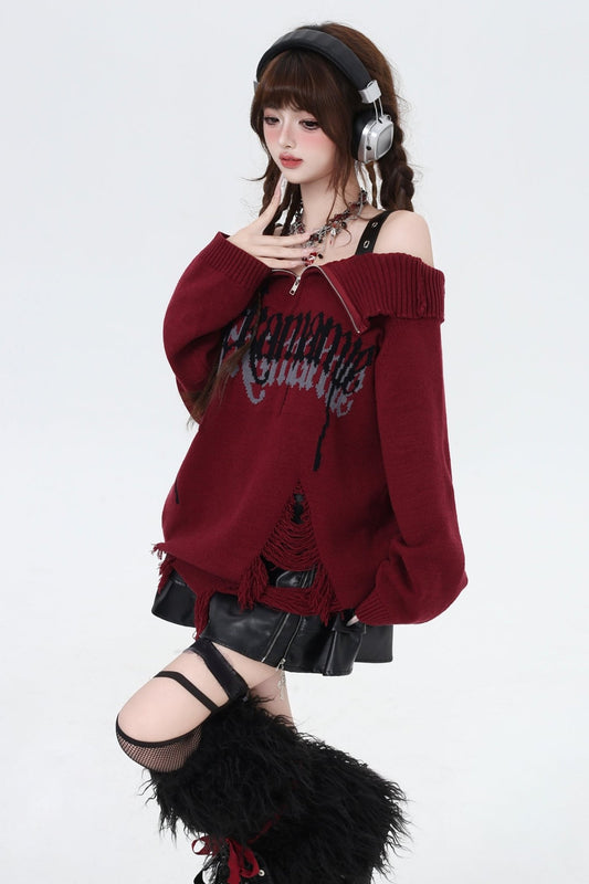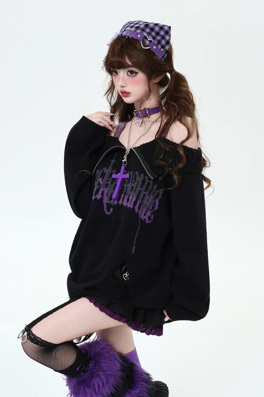 ゴシックオフショルダージッパーセーター