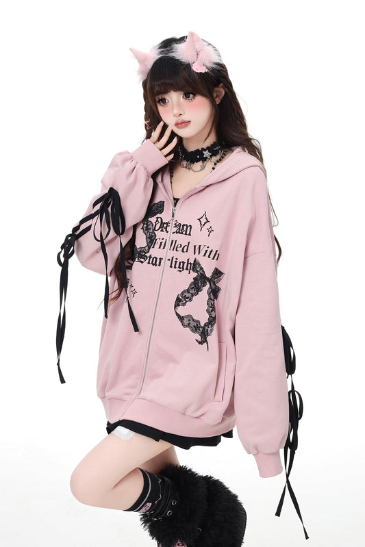 サイドリボンルーズオーバージップアップパーカー