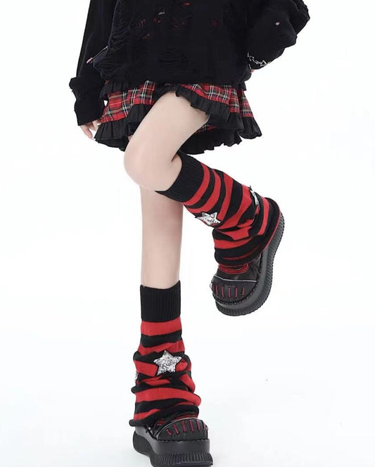 サブカルレッドブラックストライプ ベイビースターレッグウォーマー