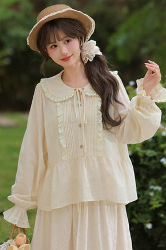 フォレストチャイナ付け襟シアーフリルシャツ+スカート【予約商品】