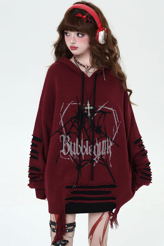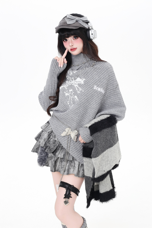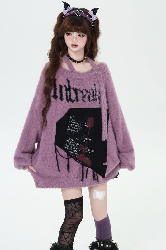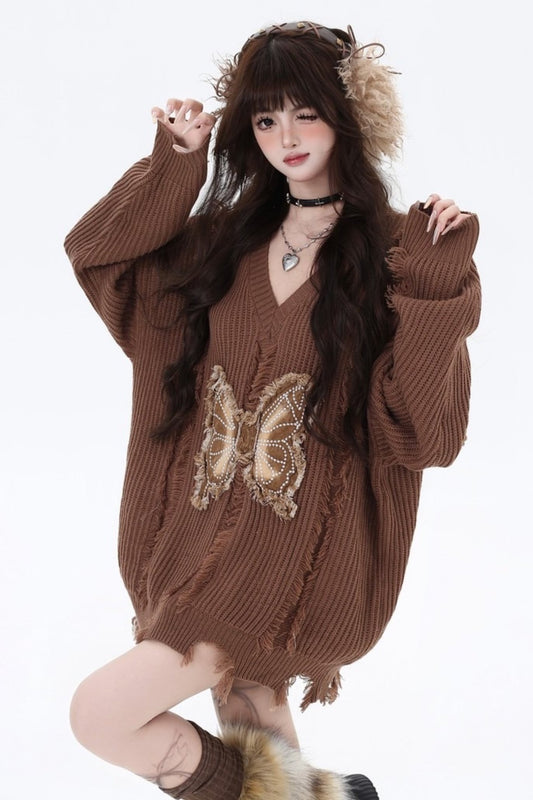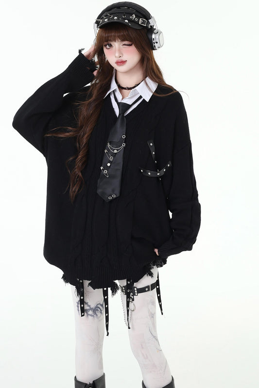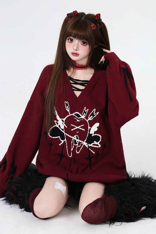 ダークスパイダールーズボリュームスリーブVネックプルオーバーニット