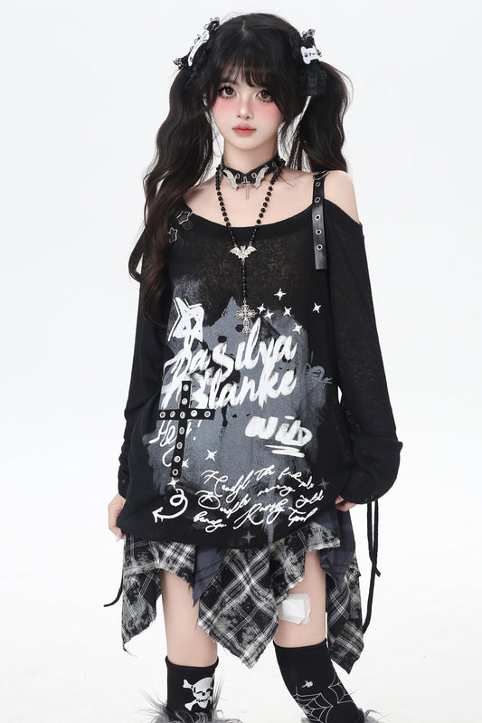 ダークナイトエルフライトレザーバックルグラフィティトップス
