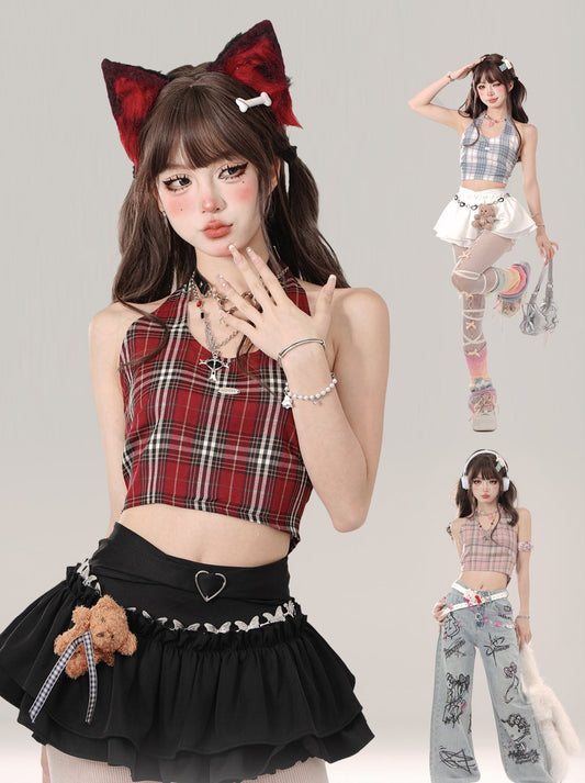 ドットリボン A ラインロングスカート+チェックA ラインロングスカート