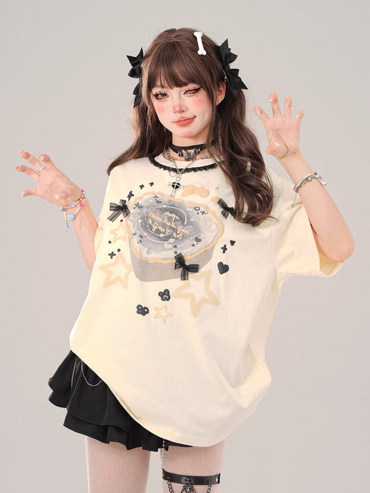 ノスタルジックウェーブレースリボンルーズTシャツ