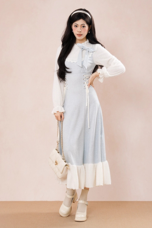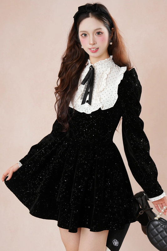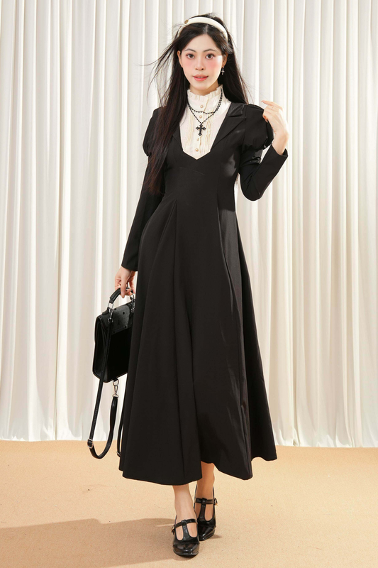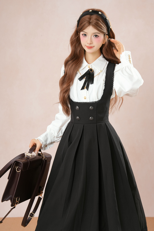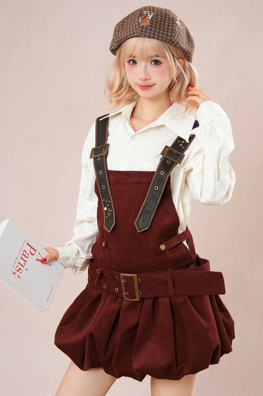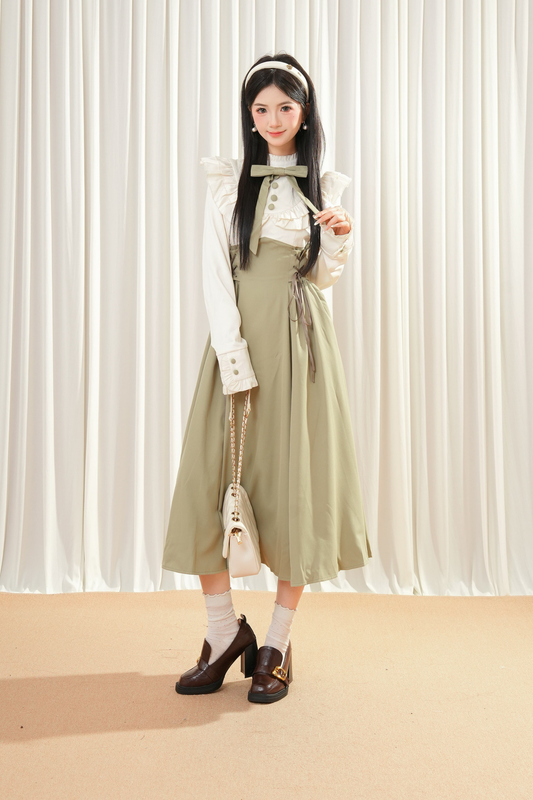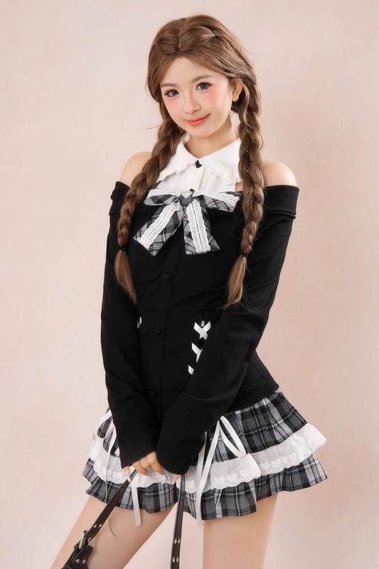 ダークフレンチフリルチェックノースリーブドレス+シャツ