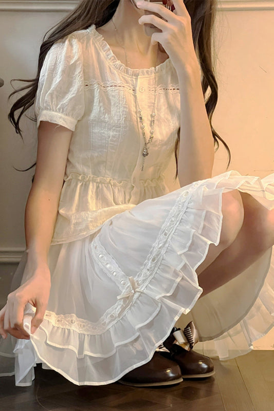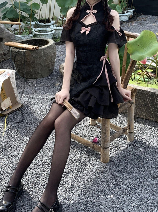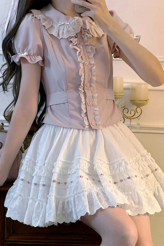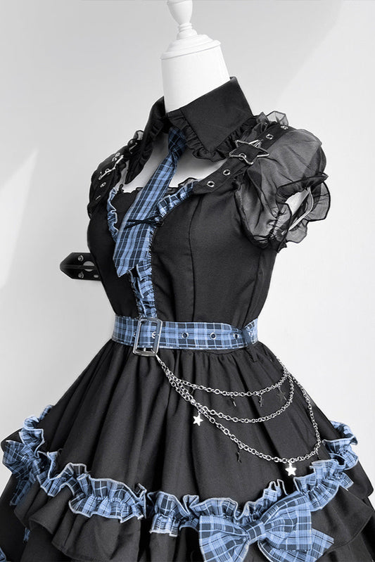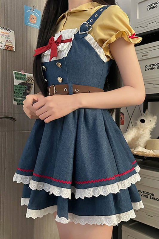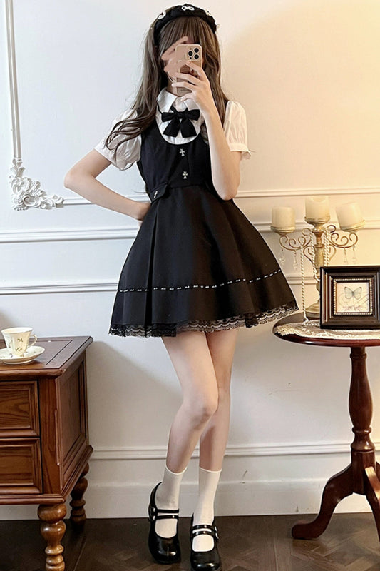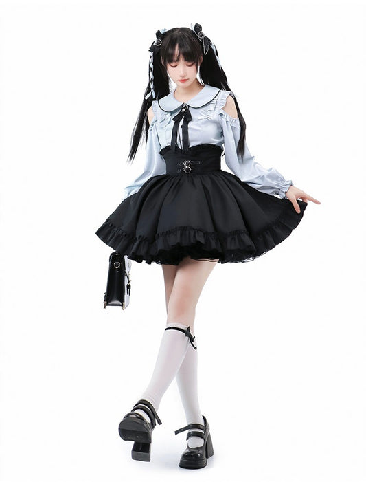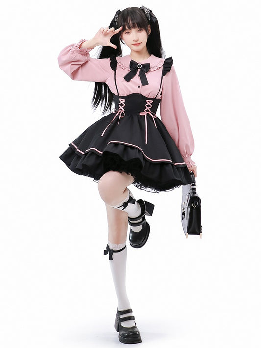 スイートピンクシャツブラックサスペンダースカートミュウ地雷セットアップ【ショート・ロング】