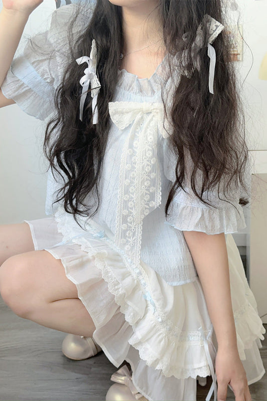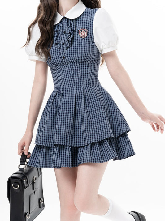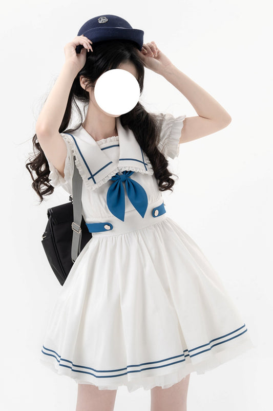 【予約商品】スイートガーリーセーラートップス+チェックリボンタイトスカート+リボン