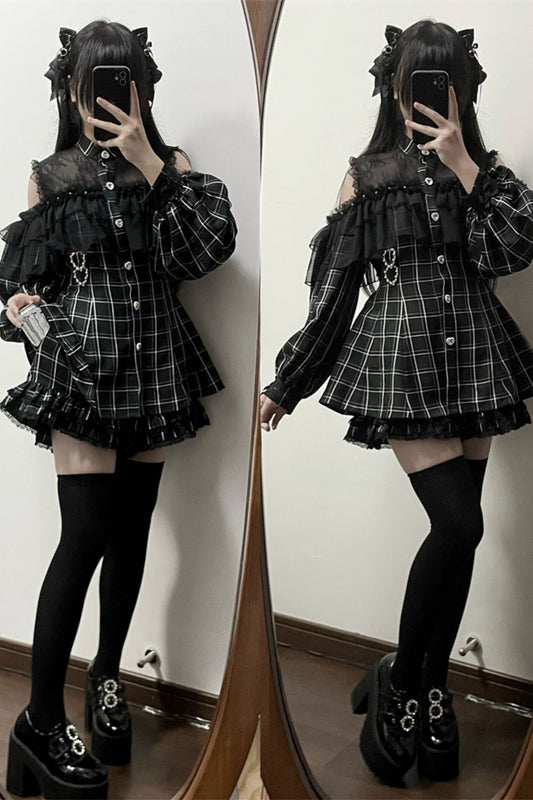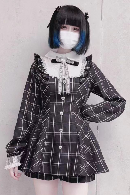 【予約商品】地雷チェックトップス+インナーチェックパンツ