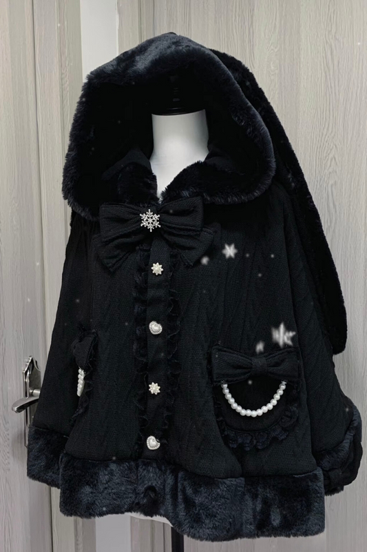 【予約商品】うさ耳フーディーリボンパールレースベルベットファーマント
