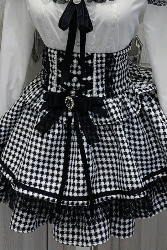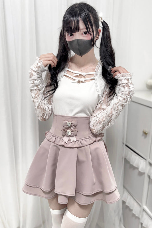 【予約商品】フリルリボンレースアップサスペンダースカート