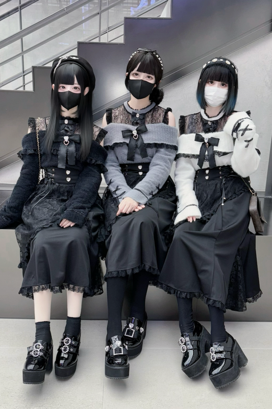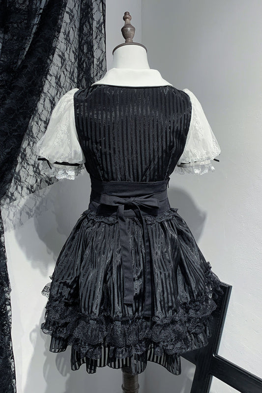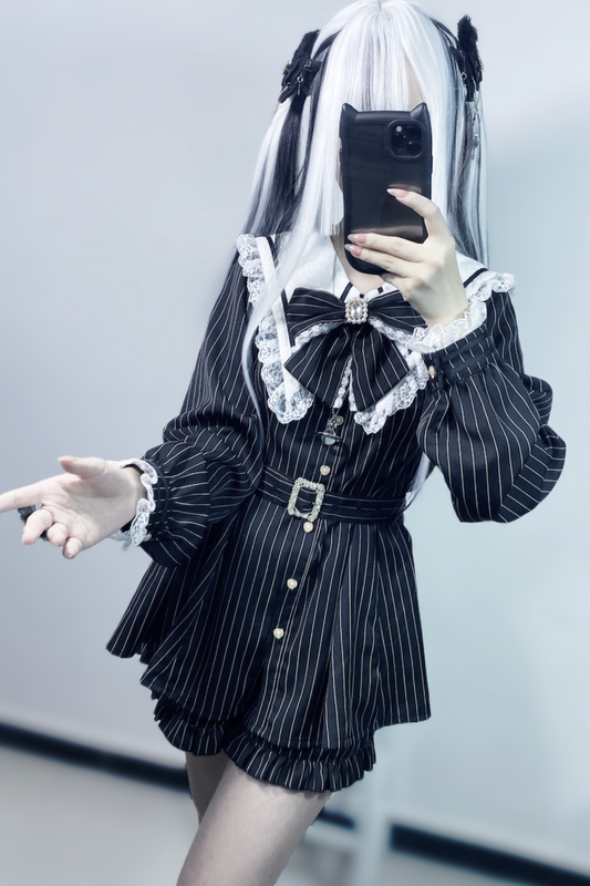 【12月6日予約締切】ゴシックストライプサブカルケープスーツセット+ヘアバンド+ヘアクリップ