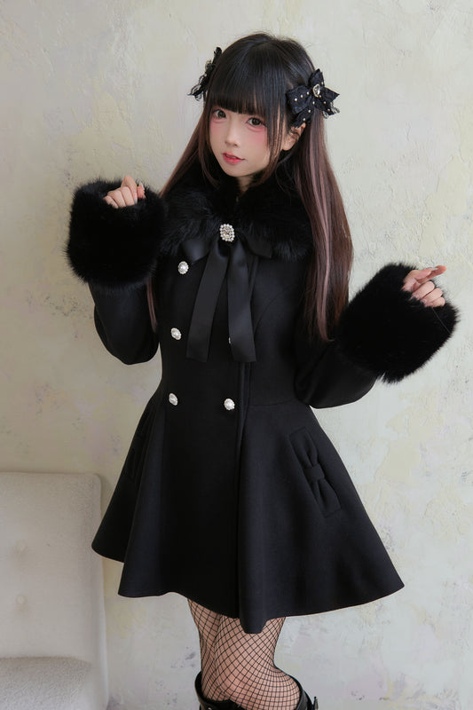 【予約商品】猫耳フーディークロスリボンジップファーコート