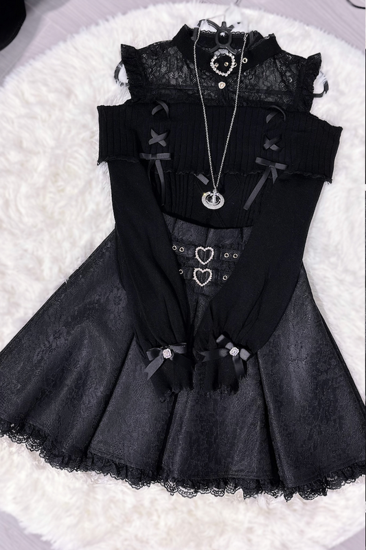 【予約商品】ギャラクシークリアシリーズブラックレースオフショルリボンフラップニットトップス