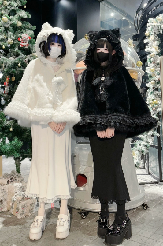 【予約商品】猫耳レースゴシックフーディープラッシュファーマント