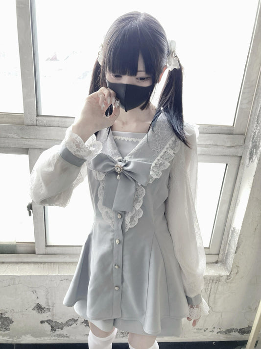 【予約商品】レースフリルカラーシャツスカートセットアップ