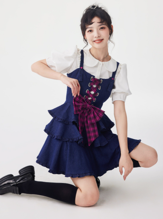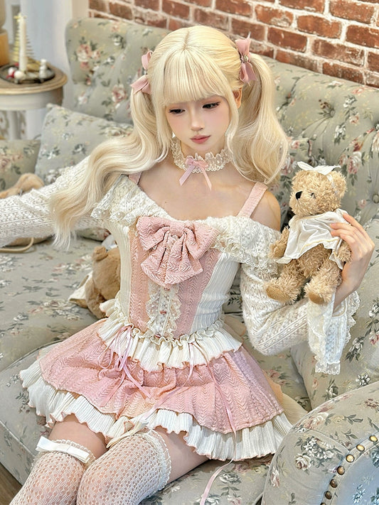 チーズスイートベリースイートホットガールプリンセスミルクトップス+ケーキスカート+チョーカー