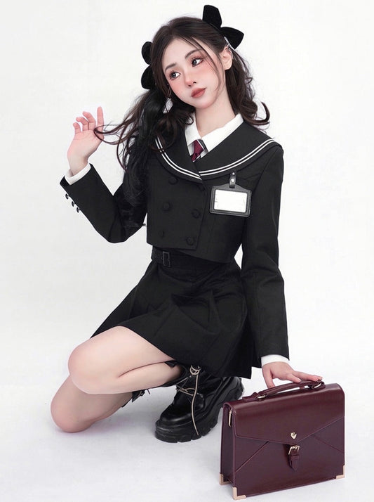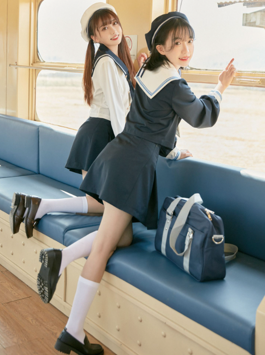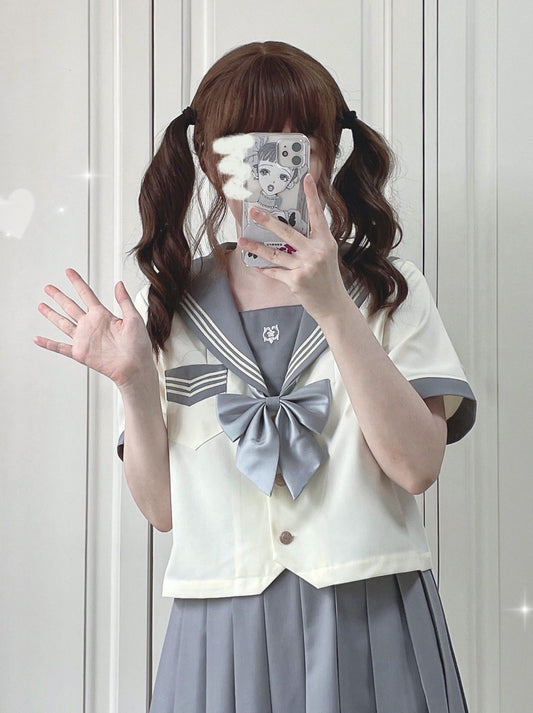 ネクタイ付きロンクスリーブセーラートップス+ネクタイ付きショートスリーブセーラートップス+プリーツスカート