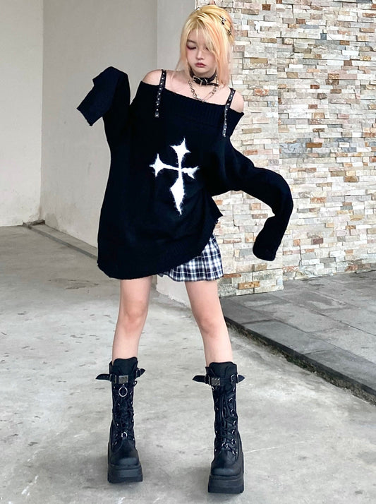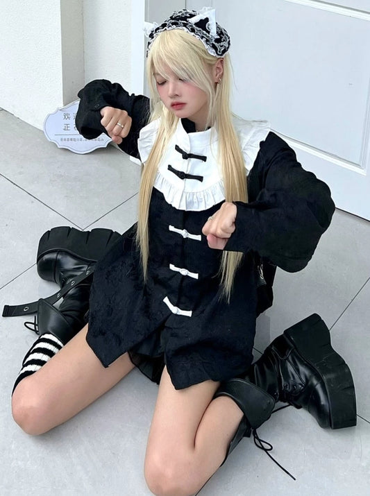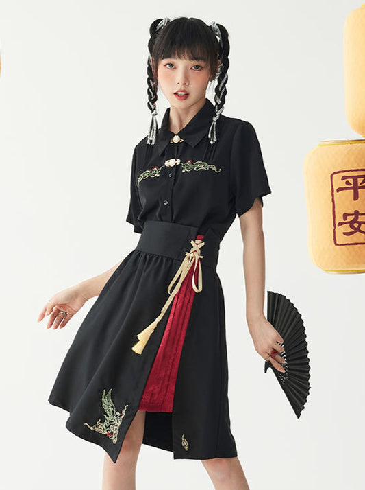 ブラックエンブロイダリーチャイナシャツ+スプリットレースアップスカート