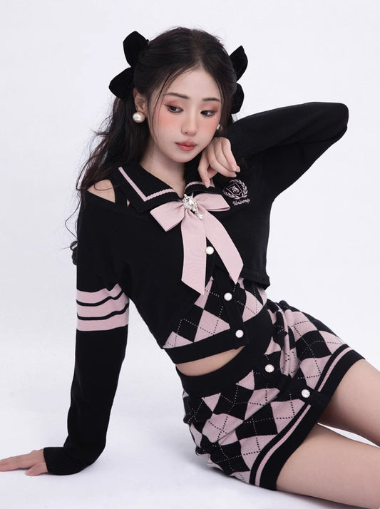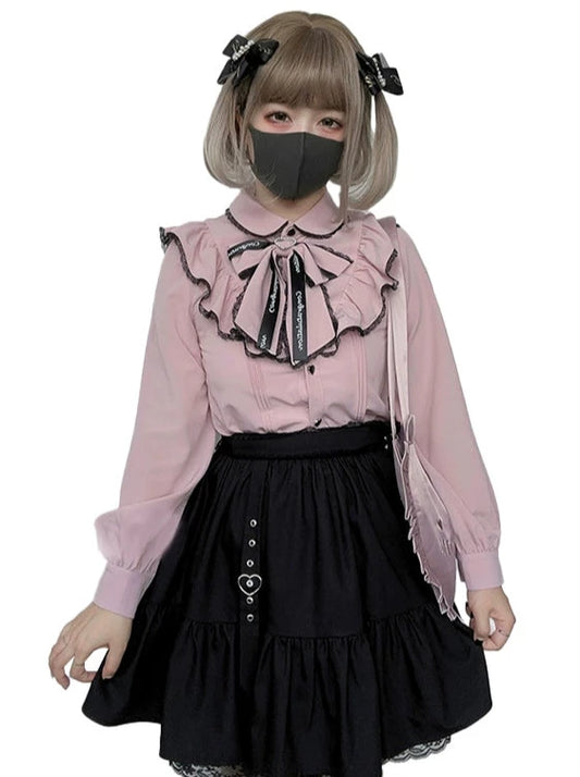 ラブストーリー地雷シオリジナルリボンシャツハイウエストスカートスーツ
