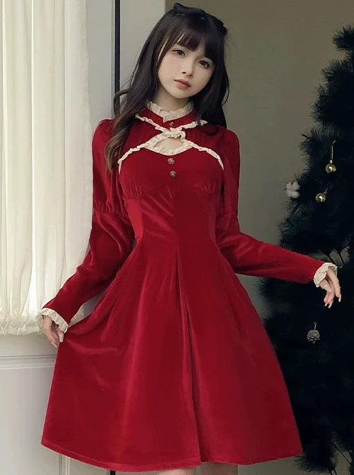 フレンチスモールフレグランススタイルレトロベルベットドレス